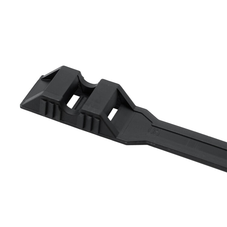 Кабельные хомуты с плоским замком предназначены для трассировки кабельно-проводниковых линий при выполнении электротехнических работ. Плоская конструкция замка делает крепеж компактным, снижает риск зацепов и предотвращает повреждение изоляции кабеля. Размеры: ширина – 8,6 мм, длина – 305 мм, цвет – черный. Хомуты оснащены двойным замком.