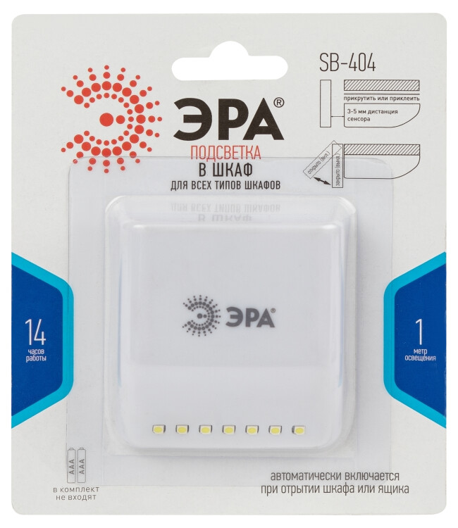 Светодиодный фонарь подсветка ЭРА Пушлайт SB-404 в шкаф самоклеящаяся поверхность (кр. 1шт)