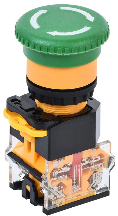 Кнопка D8-11ZS "Грибок" d=22мм 1з+1р пов. с фик. зеленая IEK (кр.10шт)