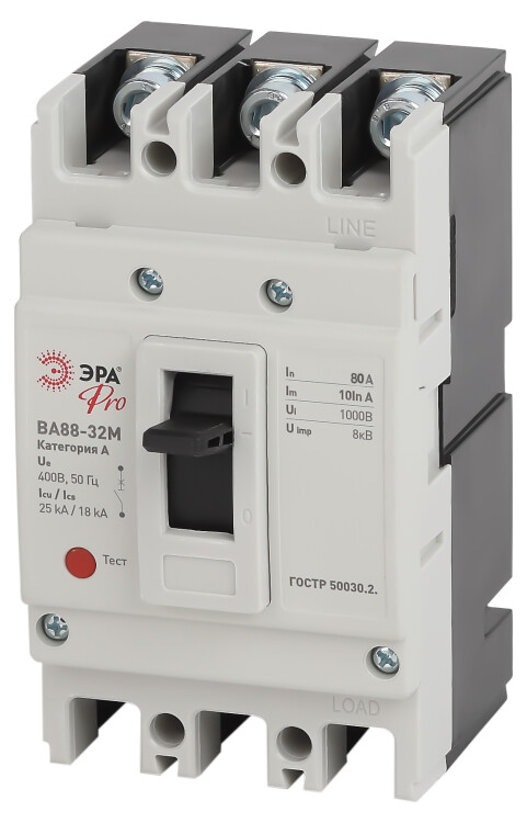 Автоматические выключатели ВА88 предназначе ны для проведения тока в нормальном режиме и отключения тока при коротких замыканиях, перегрузке, недопустимых снижениях напряжения, а также для оперативных включений и отключений участков электрических цепей и рассчитаны для эксплуатации в электроустановках с номинальным рабочим напряжением до 400 В и на номинальные токи от 12,5 до 1600 А.