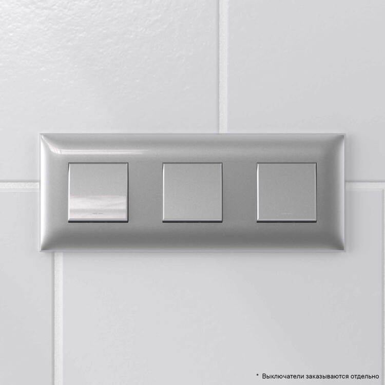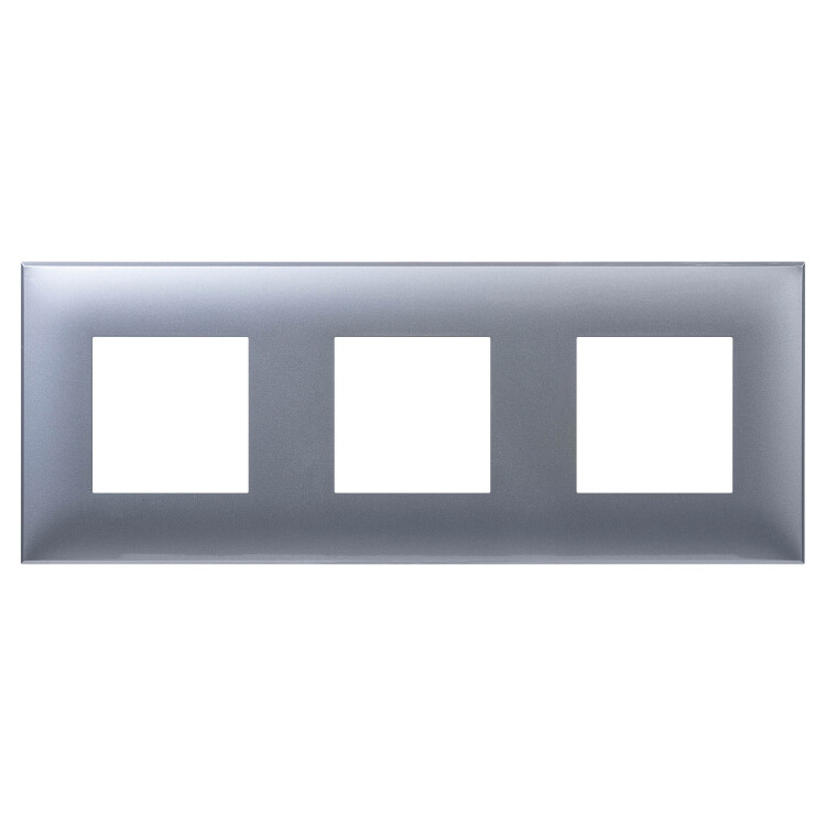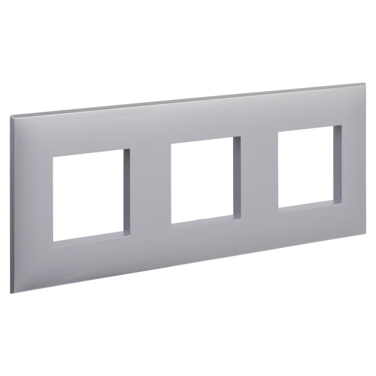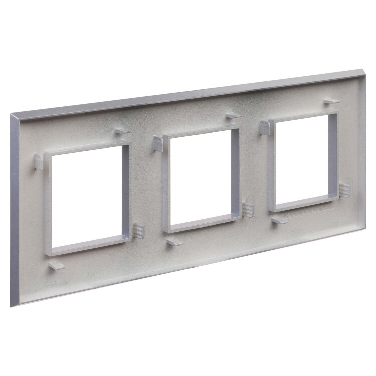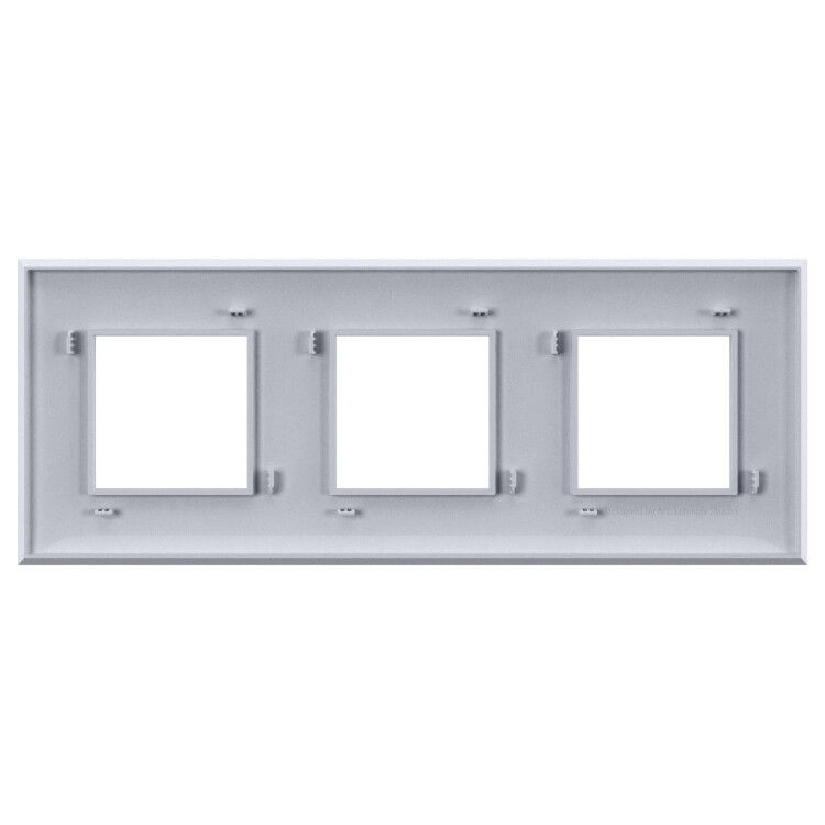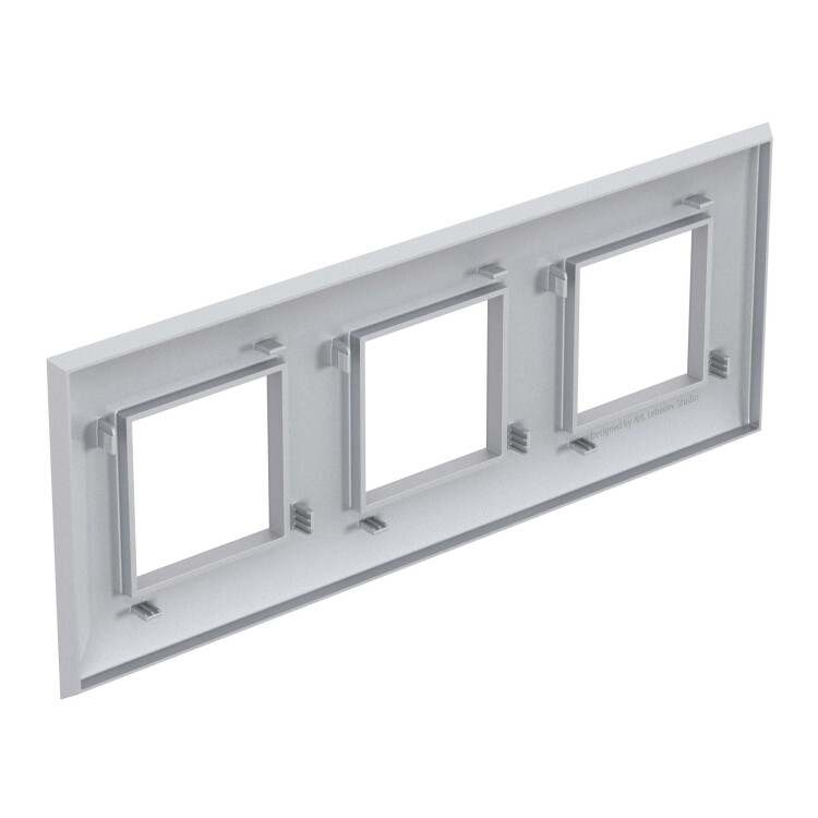 В рамке предусмотрено 3 поста под ЭУИ (максимум 6 модулей). При этом рамка может быть размещена как горизонтально, так и вертикально. Габаритные размеры: 235х90 мм. Материал – термопласт.