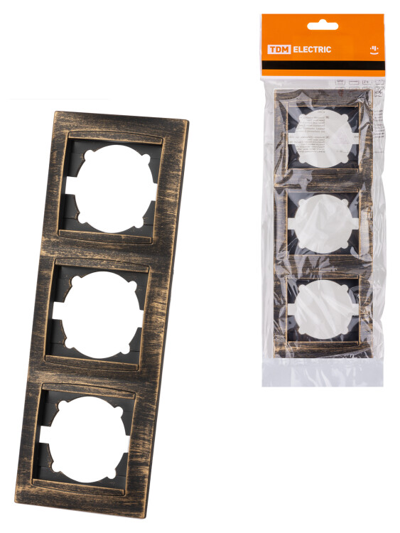 Рамка 3-х постовая вертикальная старинная бронза "Лама" TDM (кр.15шт)