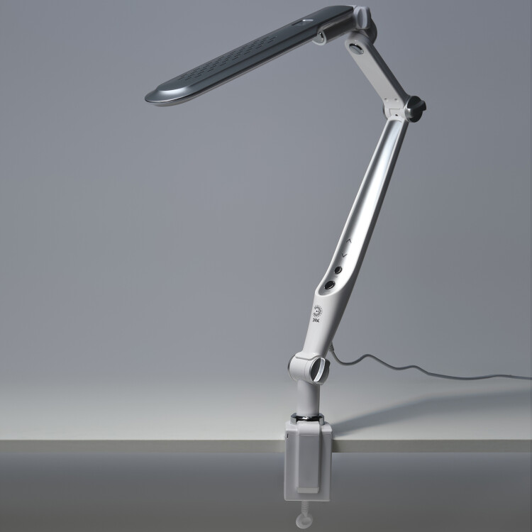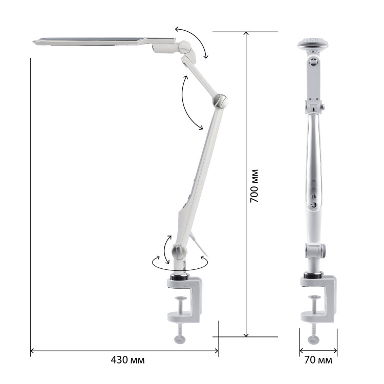 Настольный светильник ЭРА NLED-496-12W-S со светод иодами (LED) в качестве источников света. Оснащен сенсорным управлением с возможностью выбора цветовой температуры (теплый, нейтральный или холодный свет). Плавный диммер для регулировки яркости. Светильник сохраняет выбранные настройки при включении-выключении. Высота плафона регулируется двухсекционной сгибающейся стойкой, направление света регулируется поворотом и наклоном плафона в любую сторону. Удобное крепление на струбцину.