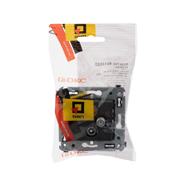 Розетк а TV-FM-SAT. Назначение: для монтажа в подрозеточные коробки глубиной не менее 45 мм (код 59301). Используется для подключения телевизионного, спутникового телевизионного и радио- кабеля к телевизору. Характеристики: винтовые зажимы; диапазон рабочих частот 4–2400 МГц; затухание