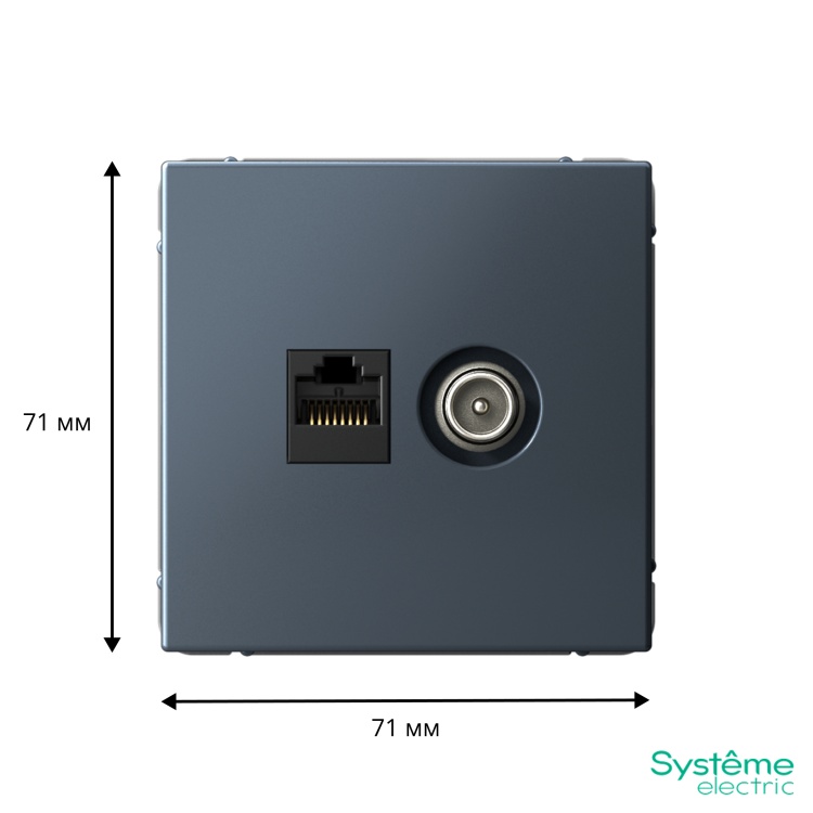 Механизм Systeme Electric серии ArtGallery в цвете грифель двойной розетки разъёмами RJ45 категория 5е и TV предназначен для удобного и быстрого подключения вашего компьютера и телевизора к соответствующим сетям.