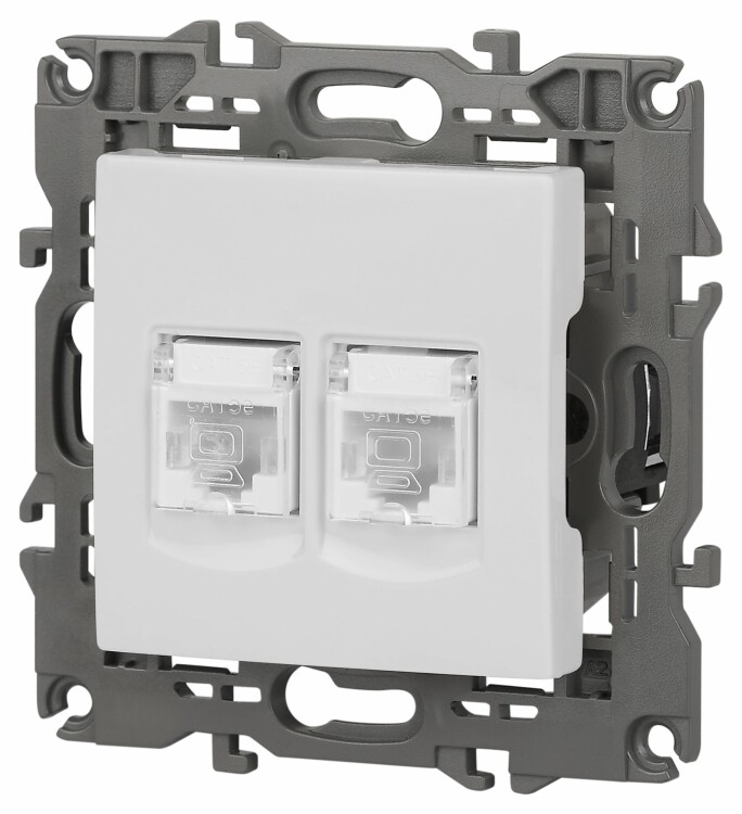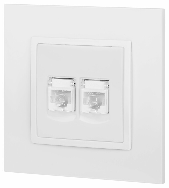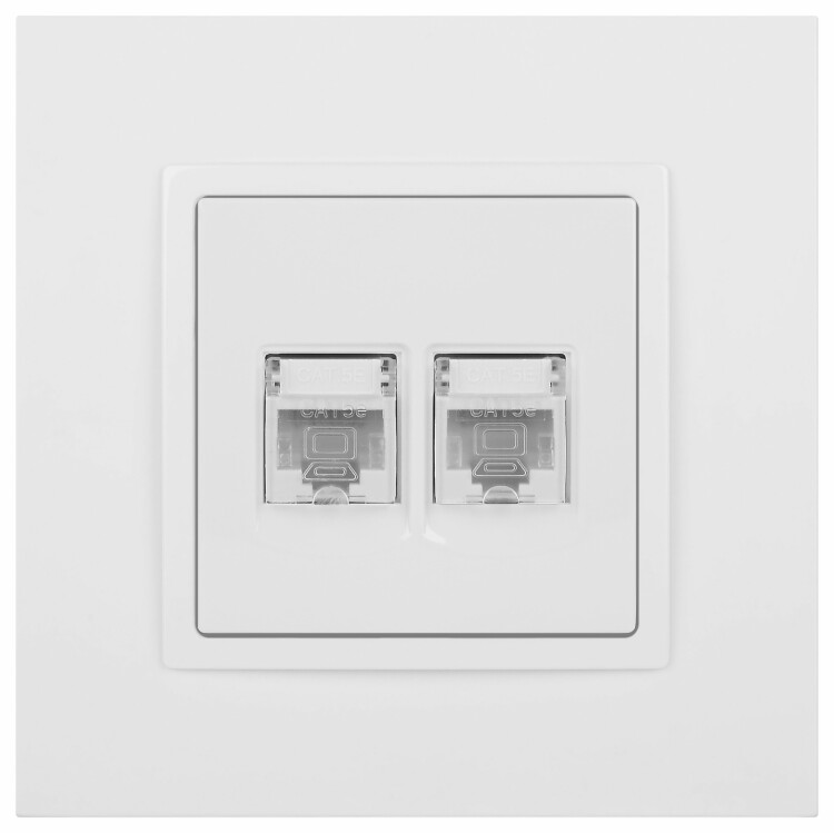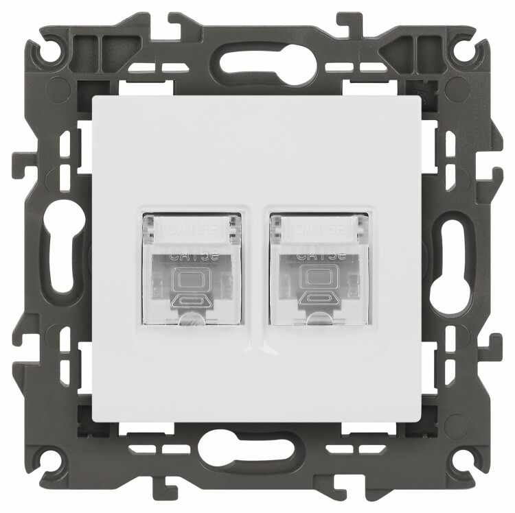 Розетка информационная двойная 2XRJ45 сер ии Эра Elegance скрытой установки цвет белый 14-3108-01. Выполенена из поликарбоната.