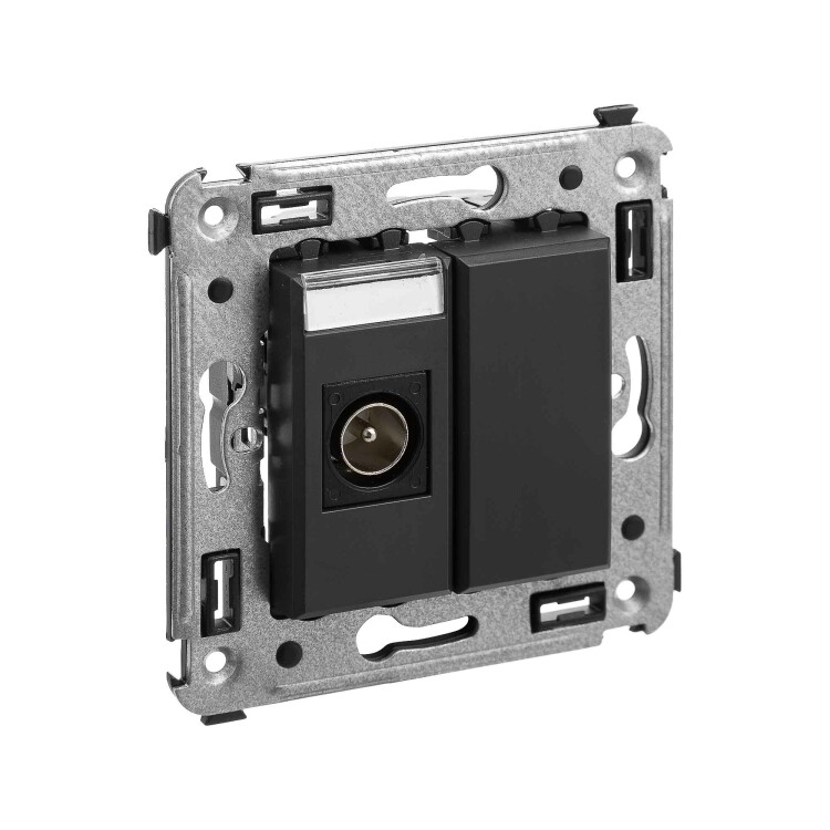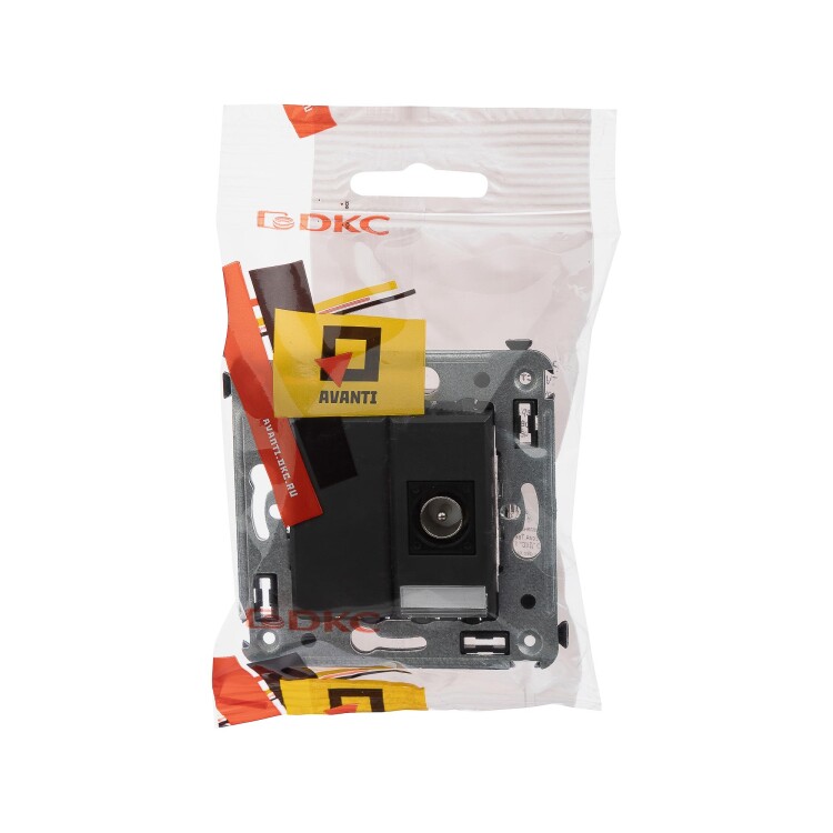 Одиноч ные телевизионные розетки предназначены для скрытой установки в стенах и применяются для подключения телевизионного кабеля. TV-розетки производства ДКС рассчитаны на частоту до 2400 Гц. Материал – металл, пластик. Пластиковые части устройства имеют цвет "Черный матовый" – таинственный, темный и глубокий оттенок, который хорошо сочетается с любыми цветами и фактурами.