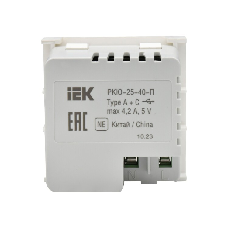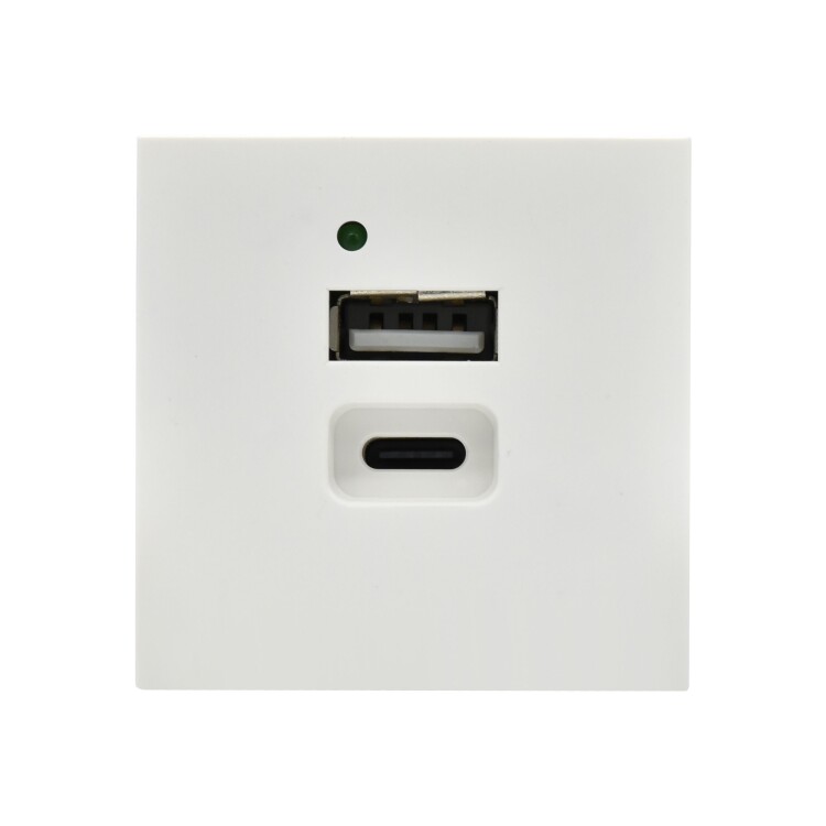 Розетка USB A+C предназначена для зарядки устройств через USB. Тип порта - А+C. Напряжение питания для устройств - 5 В. Выходной ток на одно устройство - Type A - 2,1 А, Type C - 3 А. Размеры, ВхШхГ,мм: 45х45х38. Цвет - белый.