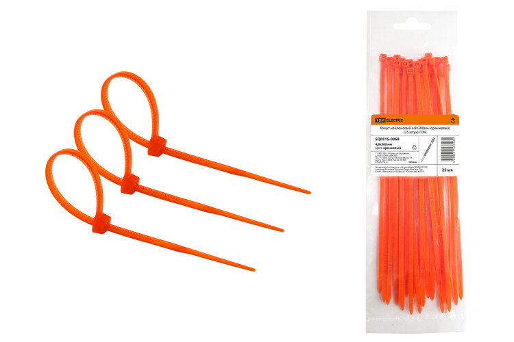 Хомут нейлоновый 4.8х300мм (оранжевый) (25 штук) TDM (кр.30упак)