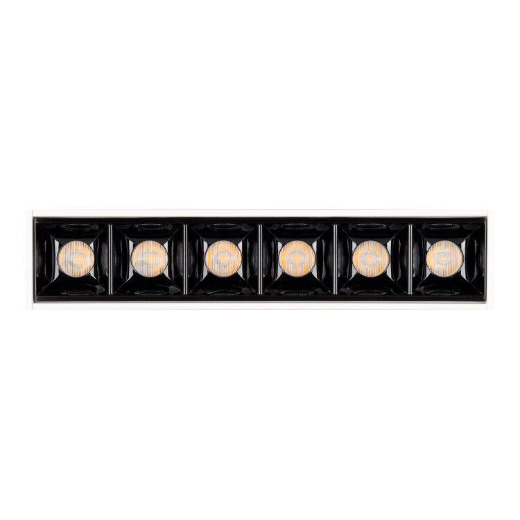 Светильник для магнитных треков шириной 45мм, 6Вт. Цвет свечения ТЕПЛЫЙ 3000K, световой поток 400лм, угол 15°, CRI>90. Корпус прямоугольный, металл, цвет белый, IP20. Размеры LxWxH 163x35x43мм. Входное напряжение DC24V, мощность 6Вт. Драйвер DС24V/AC230V поставляется отдельно. Не диммируется.
