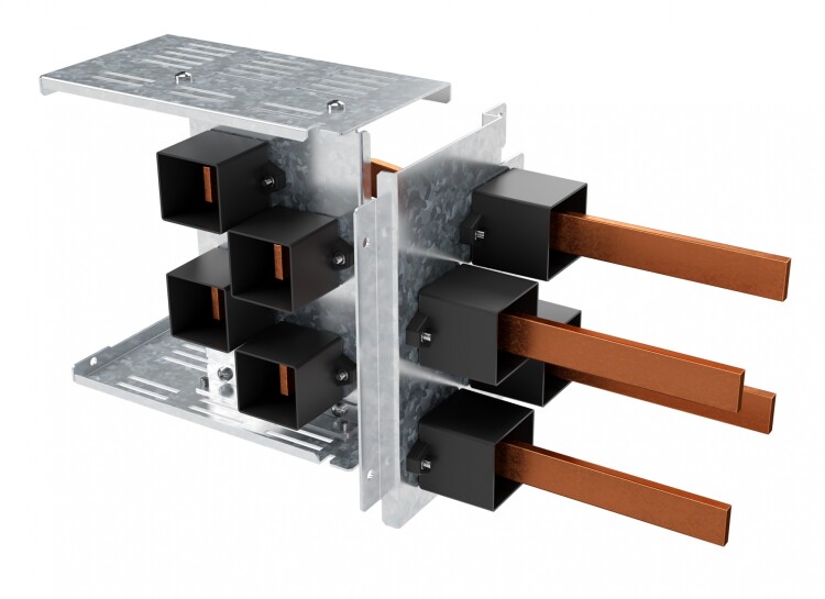 Комплект 4-полюсного секци онирования 3б для вывода шин на номинал до 250 А в кабельный шкаф одностороннего обслуживания, шины включены в комплект поставки. Комплект не содержит болтовых соединений и не требует обслуживания в процессе эксплуатации. В случае необходимости комплект шин из смонтированного комплекта можно извлечь через кабельный шкаф.