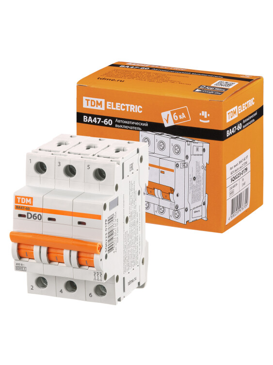 Назначение:br/Отключение тока при коротких замыканиях или перегрузке.Проведение тока в нормальном режиме. Оперативное включение и выключение электрических цепейbr/Применение:br/Вводно-распределительные устройства жилых и общественных зданий.br/Преимущества:br/Выключатели ВА47-60 имеют возможность подключать U-образную шину с обеих сторон. Что позволяет подключать питание и разводить U шиной не только сверху, как у серии ВА47-29, но и подключать питание и разводить U шиной снизу. Для монтажников это означает значительно облегчение монтажа.Высокое токоограничение, ток при коротком замыкании не достигает своей максимальной величины, тем самым меньше нагревается электропроводка в момент КЗ, при сравнении с выключателями с отключающей способностью 4,5 кАДополнительные аксессуары к серии ВА47-60: контакт положения, контакт состояния, независимый и минимально-максимальные расцепители Возможность пломбирования для защиты от несанкционированного доступа (заглушка поставляется отдельно).Высокий момент затяжки провода 3,5 Нм, что значительно больше, чем момент затяжки 2 Нм у всех 4,5 кА серий автоматических выключателей. Это позволяет надежно зажать провод, значительно снизить переходное сопротивление на клемме и тем самым уменьшить температуру выключателя, находящегося под нагрузкой.На лицевой панели расположен механический индикатор положения контактов. Особенностью данного индикатора является то, что даже при удержании рукоятки в положении включено, если контакты расцеплены, например, при расцеплении от независимого расцепителя, индикатор покажет положение расцеплено.Высокая отключающая способность 6 000 Аbr/Материалы:br/Корпус и детали выполнены из пластика, не поддерживающего горение.Маркировка выполнена в соответствии с требованиями ГОСТ и не подвержена стиранию в пределах срока эксплуатации.br/