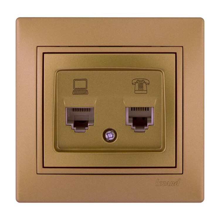 MIRA Розетка компьютерная+TF металл , золото со вставкой