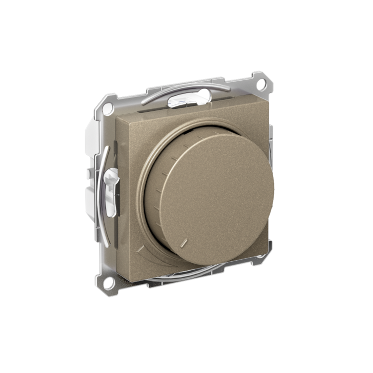 Механизм светорегулятора Systeme Electric (ранее Schneider Electric) серии AtlasDesign в цвете шампань поворотно-нажимной для нагрузки мощностью до 400 Вт, подходит для LED ламп. Светорегулятор позволяет установить в помещении комфортный уровень освещения. При подключении второго переключателя диммер может использоваться как проходной переключатель. Может использоваться как выключатель или переключатель. Выполнен из материала, стойкого к УФ-излучению и появлению царапин. (ранее Schneider Electric ЭУИ ATLASDESIGN ATN000534, ATN000536)
