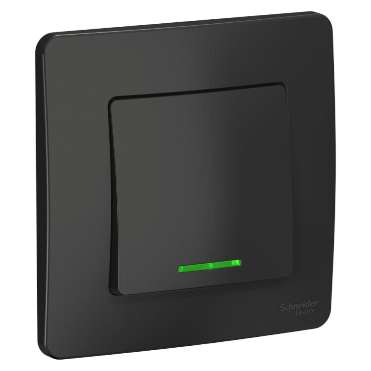 Переключатель Systeme Electric (ранее Schneider Electric) BLANCA (антрацит, скрытой установки) одноклавишный предназначен для сетей до 250В, на ток до 10А. Подсветка делает его легко находимым в отсутствие освещения. Переключатель позволяет управлять одним источником света из двух точек. Корпус изделия выполнен из ABS-пластика.