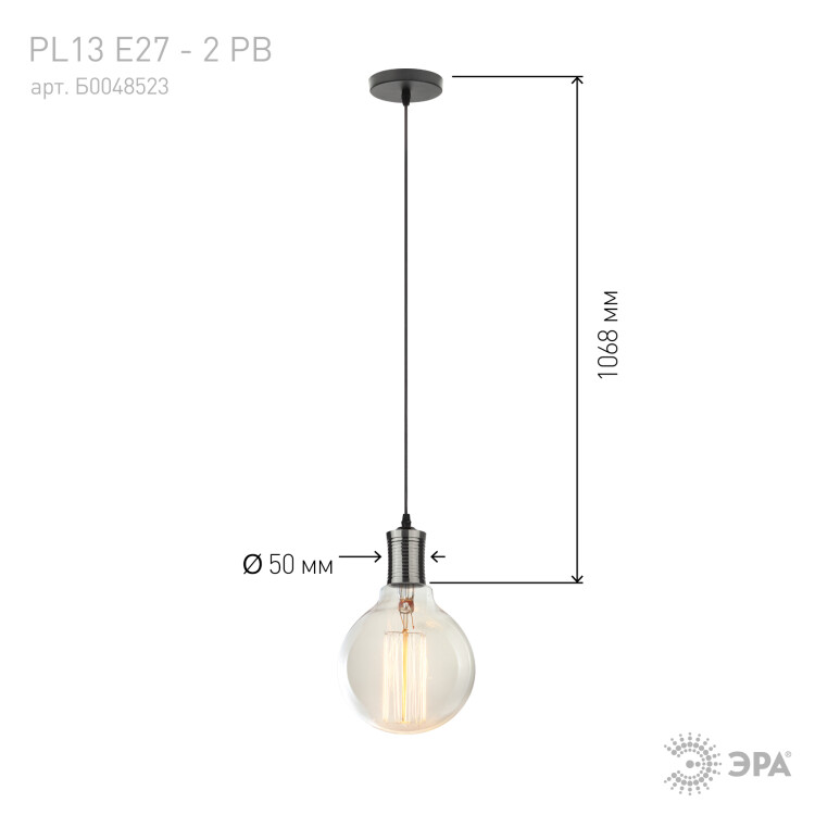 Светильник подвесной PL13 E27 - 2 PB является универсальным источником света, легко монтируется и демонтируется в потолок. Создает неповторимый дизайн и уют в помещении. Подходит для спален, гостинной, столовой и других комнат. Цоколь для источника света E27, напряжение питания 220В ~50/60Гц, материал алюминий, цвет светильника серый, размер плафона H43*D66+1000 длинна провода, максимальная мощнос ть лампы 50 Вт, степень защиты IP20