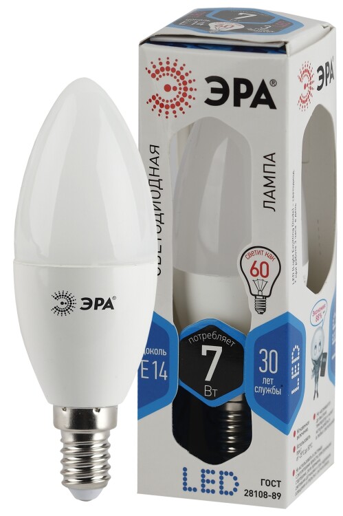 *Лампа светодиодная LED B35-7W-840-E14 ЭРА (диод, свеча, 7Вт, нейтр, E14) (10/100/3500)