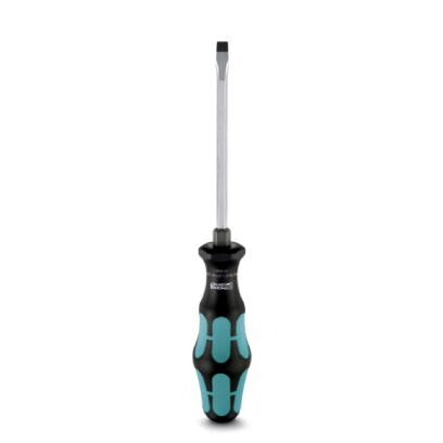 Отвертка, шлиц, с ударным колпачком, со вспомогательным шестигранным ключом для гаечного ключа с открытым зевом и накидного гаечного ключа, размер: 1,2 x 7,0 x 125 мм, двухкомпонентная ручка, с защитой от перекатывания