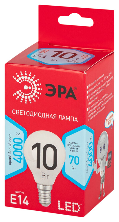 Эта светодиодная лампа ЭРА Серии Бюджет - современный, качественный и доступный источник света. Позволяет экономить до 90% электроэнергии по сравнению с лампой накаливания с аналогичным световым потоком. Светит ярким белым светом, который максимально приближен к естественному дневному. Идеальна для ежедневного применения в быту. Мгновенное включение. Ровное освещение. Можно использовать как с люстрами, так и со светильниками, в том числе настольными и бра.
