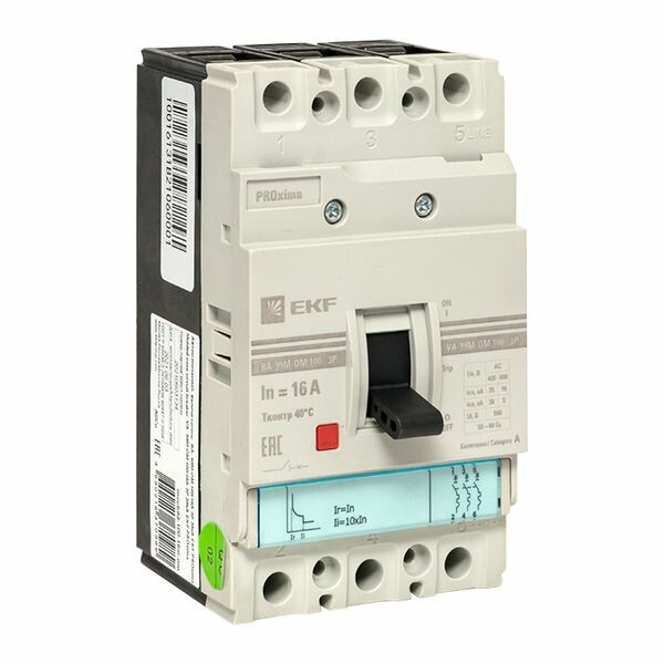 Автоматические выключатели ВА-99М-ОМ торговой марки EKF входят в Российский Морской Регистр Судоходства. Предназначены для нечастых оперативных включений и отключений тока в нормальном режиме, а также защиты от токов перегрузки и коротких замыканий электроустановок жилого и гражданского строительства, на производственных площадках, электроподстанциях, распределительных пунктах, щитовом электрооборудовании с номинальным рабочим напряжением до 400 В переменного тока частотой 50 Гц с токами от 16 до 1600 А. Выключатель ВА-99М-ОМ выполнен в виде моноблока и состоит из основания и крышки, в которой имеется окно для рукоятки управления и окно для нажатия толкателя кнопки «ТЕСТ» – проверки механизма отключения. Основание выполнено из термостойкой АВС пластмассы, не поддерживающей горение и являющейся несущей конструкцией для присоединительных зажимов, неподвижных силовых контактов с системой дугогашения, механизма управления, с системой подвижных контактов, электромагнитными и тепловыми расцепителями. Тепловая защита выполнена в виде биметаллической пластины. расцепители выставлены в заводских условиях и являются нерегулируемыми. Крышка корпуса, так же выполненная из термостойкой АВС пластмассы, закрывает весь механизм и предохраняет от поражения электрическим током при работе с выключателем