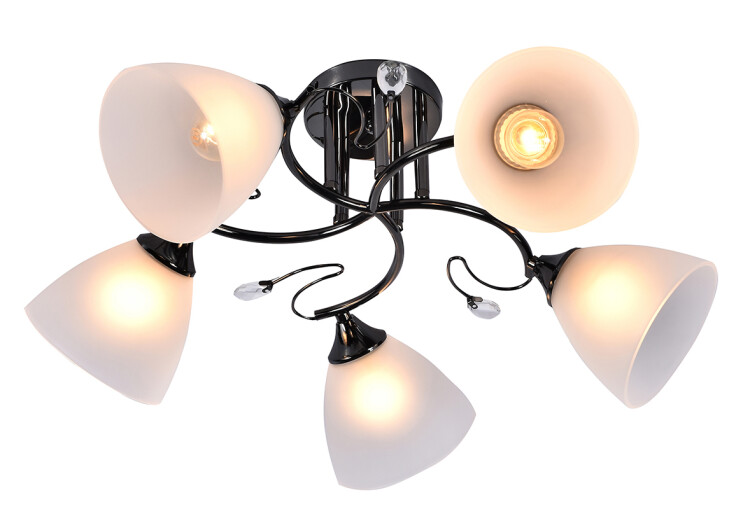 Универсальные люстры с плафонами-конусами декорированы прозрачными кристаллами, в которых красиво играют лучи света. Лампы в Rivoli Jutte располагаются по кругу, обеспечивая качественное освещение пространства. Плафоны, похожие на цветочные колокольчики, и кристальные капли росы напоминают о лете и создают в доме тёплую атмосферу. Выбирайте эти люстры для гостиной, кухни, спальни, холла, детской, квартиры-студии. Вы оцените качество материалов и приятный дизайн. Коллекция представлена потолочной люстрой на 5 ламп.