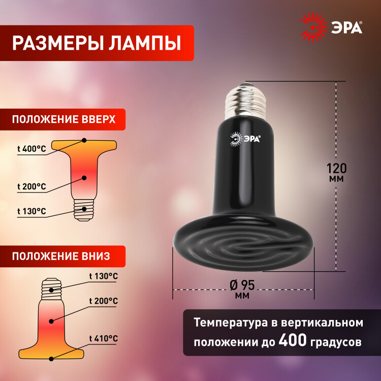 Инфракрасная лампа ЭРА FITO-200W-НQ керамическая серии CeramiHeat модель RX для брудера, рептилий 200 Вт Е27 (кр. 1шт )
