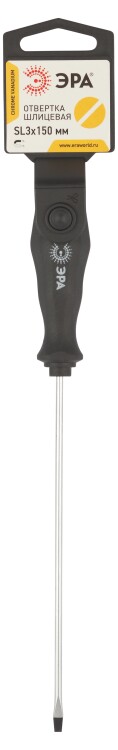Шлицевая отвертка ЭРА SL с двухкомпонентной рукояткой. Размер - 3х150 мм. Шлицевая отвёртка ЭРА - удобное решение для работы с саморезами и шурупами, когда не требуется тугое закручивание.