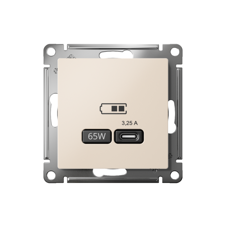 Розетка Systeme Electric (ранее Schneider Electric) серии AtlasDesign в цвете бежевый USB с разъемом типа C высокоскоростная. Самая современная USB-зарядка позволяет заряжать ноутбук, а также смартфоны последнего поколения, которые поддерживают функцию быстрой зарядки. Мощность: тип-С - 65Вт. Поддерживает современные протоколы быстрой зарядки QC, PD, последних версий. Лицевые детали из качественного ABS-пластика, устойчивого к царапинам и УФ-излучению.