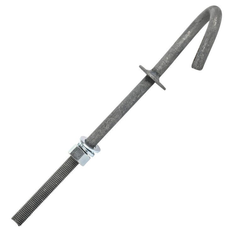 Крюк монтажный сквозной B 16/240 применяется для крепления анкерных или поддерживающих зажимов на железобетонных, металлических или деревянных опорах с монтажными отверстиями.