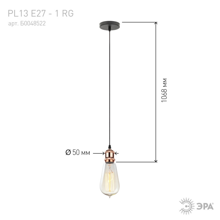 Светильник подвесной PL13 E27 - 1 RG является универсальным источником света, легко монтируется и демонтируется в потолок. Создает неповторимый дизайн и уют в помещении. Подходит для спален, гостинной, столовой и других комнат. Цоколь для источника света E27, напряжение питания 220В ~50/60Гц, материал алюминий, цвет светильника розовое золото, размер плафона H68*D50+1000 длинна провода, максимальн ая мощность лампы 50 Вт, степень защиты IP20