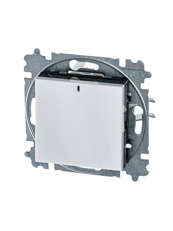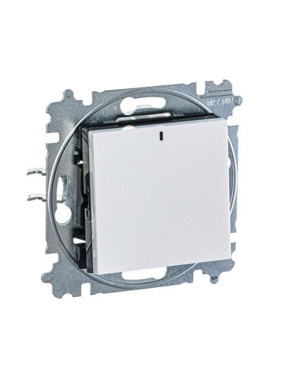 Механизм выключателя в комплекте c накладкой и блоком подсветки для установки в декоративную рамку. Подсветка LED ориентационная белого цвета