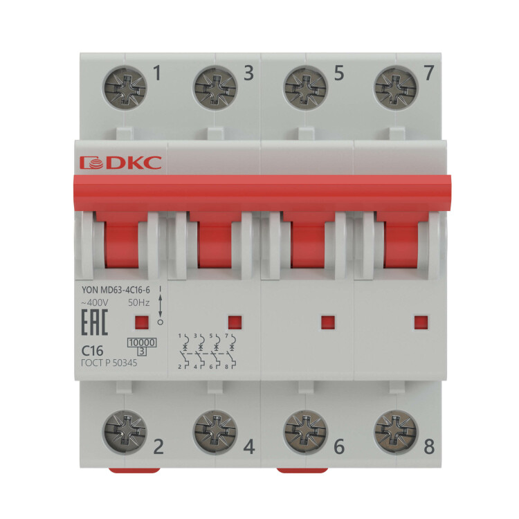 Модульный четырехполюсный автоматический выключатель YON MD63 номиналом 20 A с характеристикой расцепителя "C" и отключающей способностью 10 кА предназначен для применения в электрических цепях напряжением до 400 В переменного тока частоты 50 Гц, их защиты при перегрузках и коротких замыканиях, проведения тока в нормальном режиме и оперативного включения и отключения указанных цепей. К выключателю могут присоединяться независимый расцепитель в отдельном модуле и вспомогательные контакты в отдельном модуле. Независимый расцепитель и вспомогательные контакты заказываются отдельно и устанавливаются на выключатели потребителем по мере необходимости.