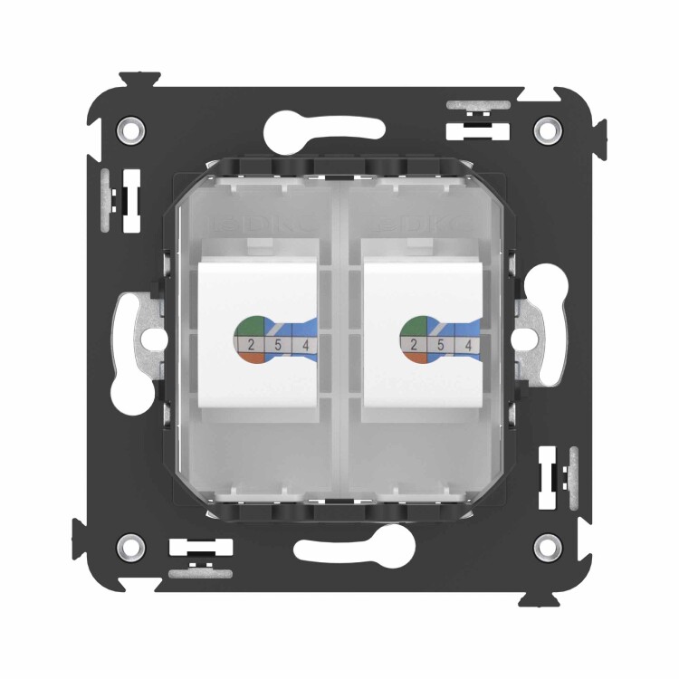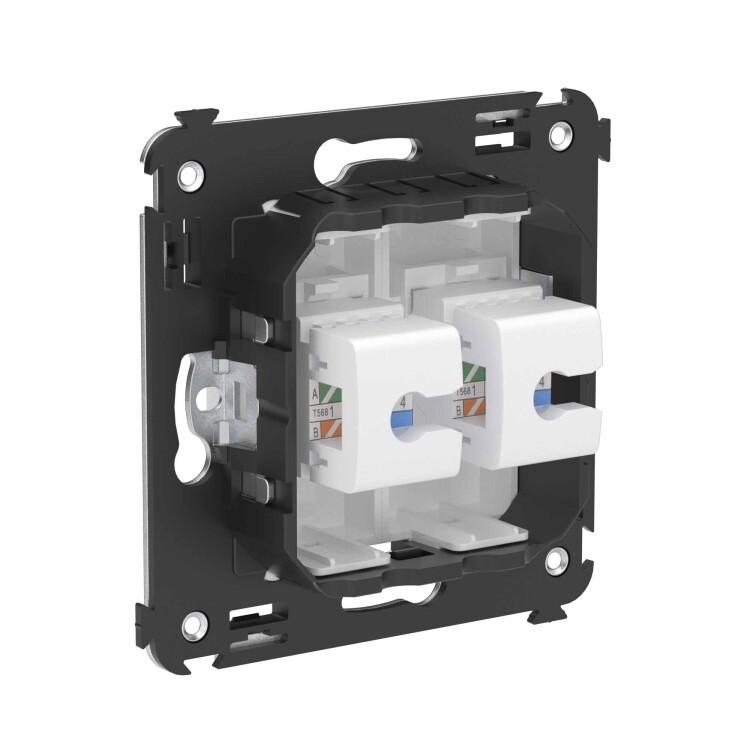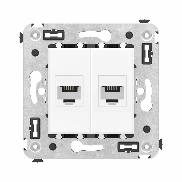 Телефо нная розетка RJ-12 двойная без шторки используется для коммутации линий телефонной связи в патч-панелях или для связи телефонных аппаратов с розеткой. Предназначена для скрытого монтажа в стену, поставляется в комплекте с суппортом. Материал – металл, термопласт.