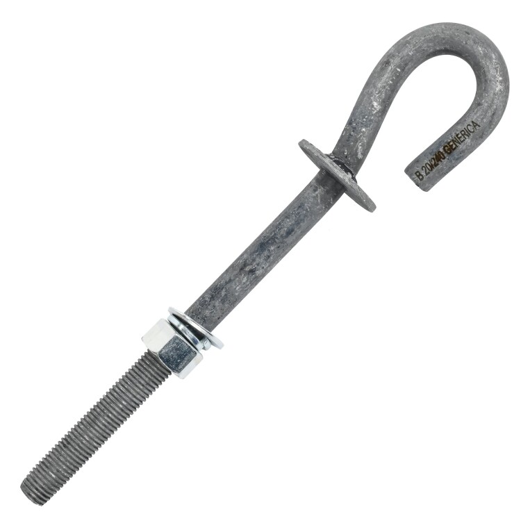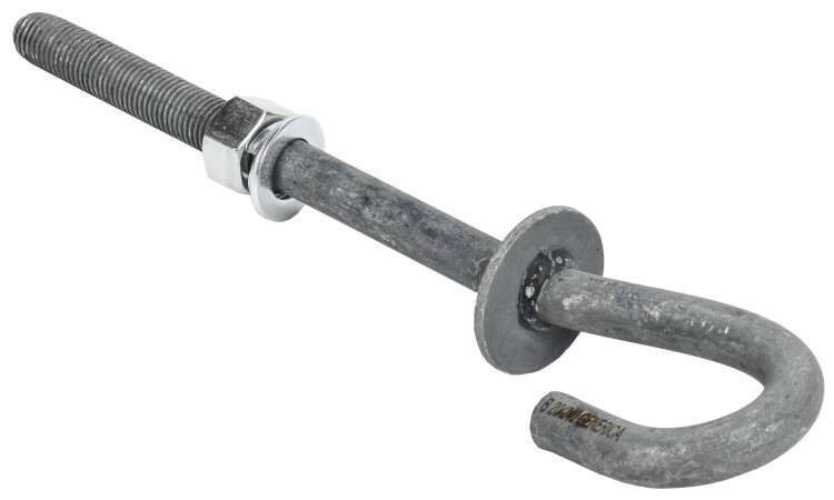 Крюк монтажный сквозной B 20/240 применяется для крепления анкерных или поддерживающих зажимов на железобетонных, металлических или деревянных опорах с монтажными отверстиями.