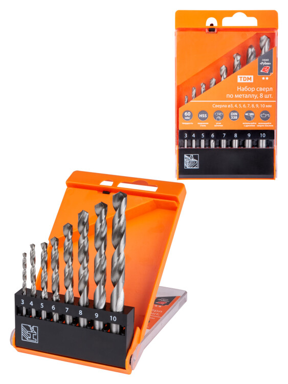 Назначение:br/Сменный режущий инструмент для сверления отверстий.br/Применение:br/В зависимости от артикула сверление отверстий в бронзе, латуни, алюминии, стали, пластике или в дереве.br/Преимущества:br/Форма спирали способствует быстрому удалению (отведению) стружки;Точное центрирование позволяет выполнить ровное отверстие в намеченном месте.br/Материалы:br/Сверла по металлу сталь HSS.Сверла по дереву сталь Ст40.Держатель пластик.br/Упаковка:br/Пластиковый держательbr/
