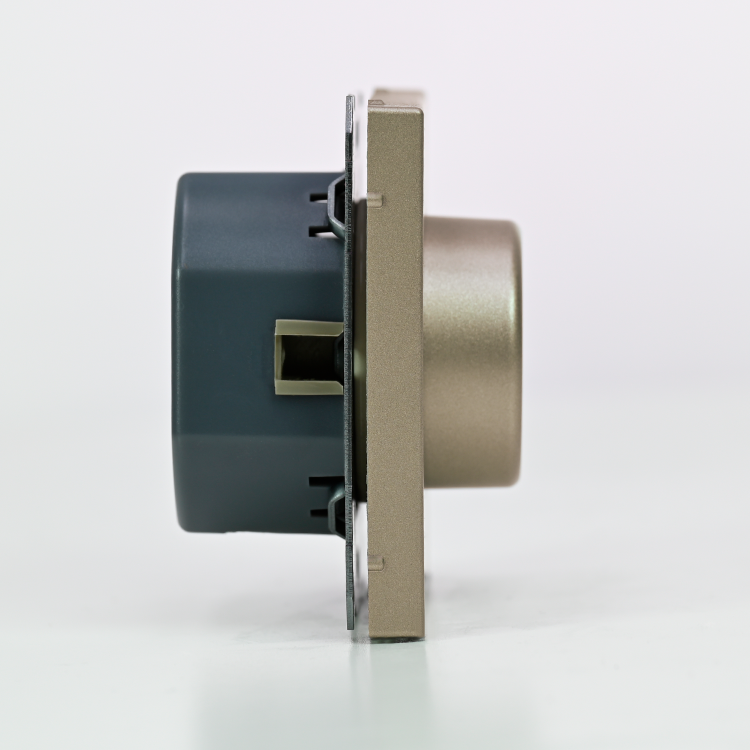 Механизм светорегулятора Systeme Electric серии ArtGallery в цвете шампань поворотно-нажимной для нагрузки мощностью до 400 Вт, подходит для LED ламп.