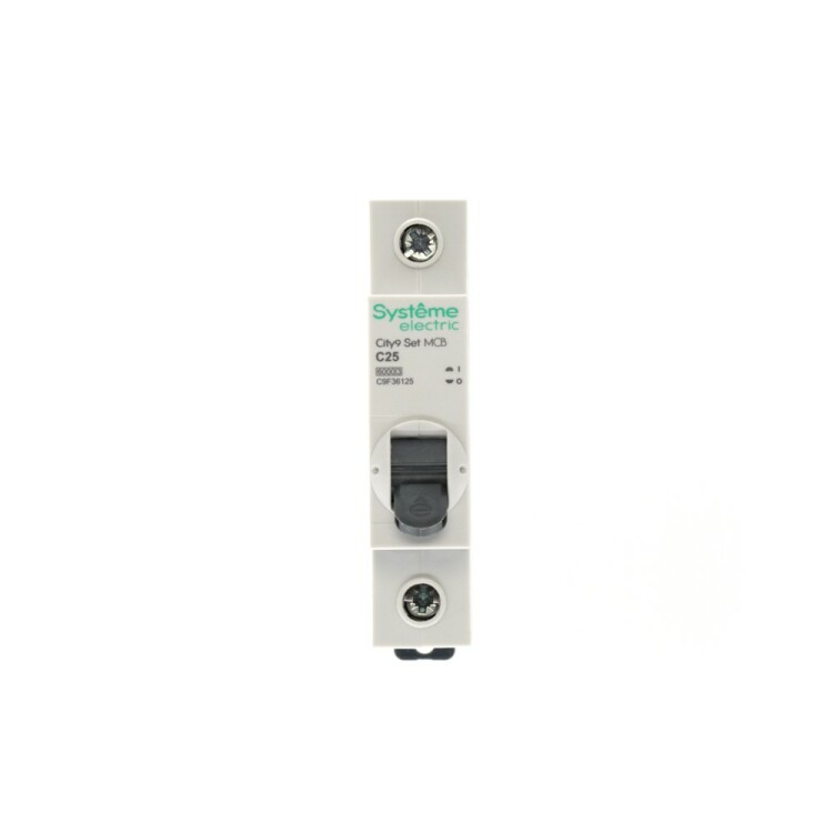 Автоматический выключатель серии City9 Set Systeme Electric, 1-полюсный, номинальный ток 25 А, характеристика С, Icn = 6 кА. Применя ется в электрических сетях напряжением 230 В. Предназначен для защиты от перегрузок и токов короткого замыкания. Оснащен механизмом «мгновенной коммутации». Ударопрочный корпус из специального пластика с 6 металлическими заклепками. Безопасные клеммы исключают попадание кабелей в заклеммное пространство.