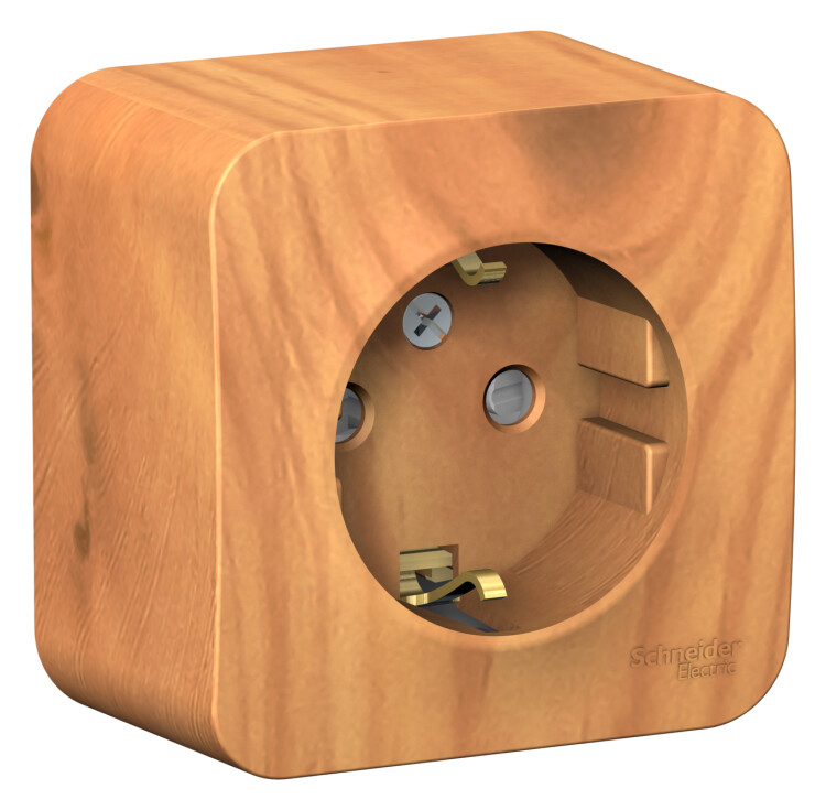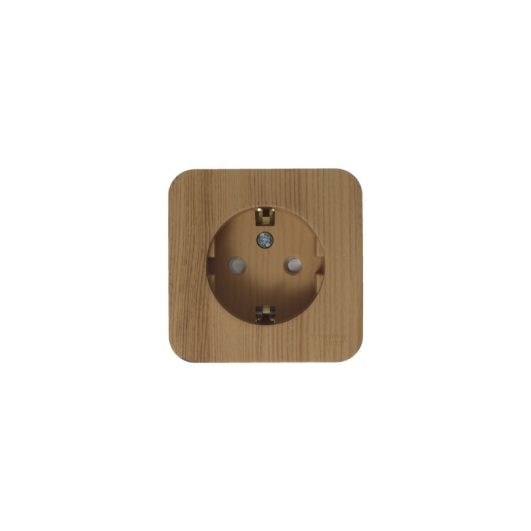 Розетка Systeme Electric (ранее Schneider Electric) BLANCA (ясень, открытой установки) одноместная с заземлением, шторками и изолирующей пластиной предназначена для сетей до 250В, на ток до 16А. Шторки открываются только при одновременном равномерном давлении в оба отверстия и препятствуют проникновению посторонних предметов. Они обеспечат дополнительную безопасность в доме, где есть дети. Изделия ц вета Ясень обладают уникальным рисунком, напоминающим древесный сруб.