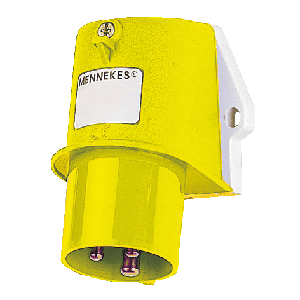 16A, 3п, 4ч, 110B, 50-60Гц. Вилка настенная приборная, угол наклона 15 гр., внешнее или внутреннее крепление, ввод кабеля сверху М20, или через основание 5,3 мм, сечение кабеля 1 - 2,5 кв.мм, винтовое соединение, желтая, IP44.