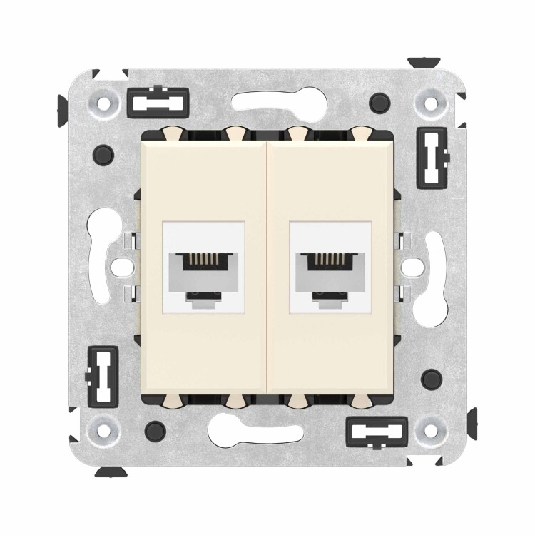 Телефо нная розетка RJ-12 двойная без шторки используется для коммутации линий телефонной связи в патч-панелях или для связи телефонных аппаратов с розеткой. Предназначена для скрытого монтажа в стену, поставляется в комплекте с суппортом. Материал – металл, термопласт.