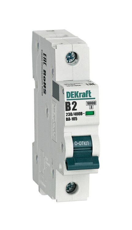 Автоматический выключатель серии ВА-105 DEKraft; 1P; ном. ток 2 А; характеристика В; откл. способность 10 кА; ширина модуля 18 мм. Аппараты имеют механизм мгновенной коммутации, 6 монолитных заклепок, которые повышают прочность корпуса. Боковые каналы охлаждения повышают стабильность работы при высоких температурах окружающей среды. Есть возможность установки дополнительных аксессуаров с левой стороны устройства. Аппарат на 100% совместим с корпусами и оболочками DEKraft и Systeme Electric.