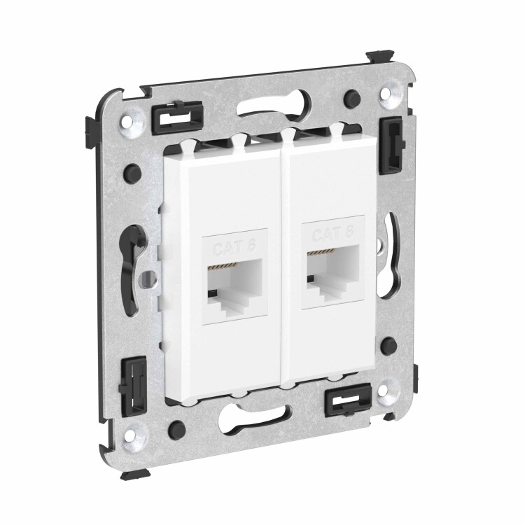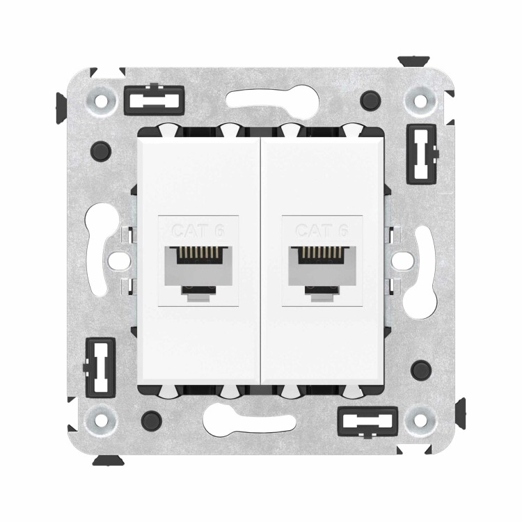 Компью терная розетка двойная используется для подключения компьютерной техники и соединения с патч-панелью, предназначена для скрытого монтажа в стену, поставляется в комплекте с суппортом. Розетка RJ-45 категории 6 может использоваться для организации сетей с частотой до 250 МГц и передавать данные на большие расстояния. Материал розетки – металл, термопласт. Пластиковые детали изделия выполнены в цвете "Белое облако" – самом универсальном оттенке из цветовой гаммы ЭУИ "Avanti".
