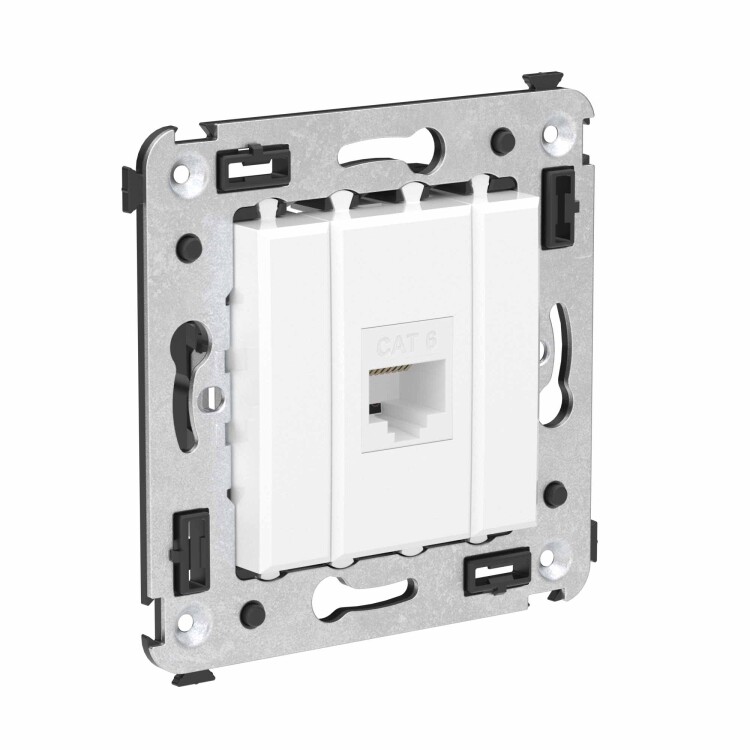 Компью терная розетка без шторки используется для подключения компьютерной техники и соединения с патч-панелью, предназначена для скрытого монтажа в стену, поставляется в комплекте с суппортом. Розетка RJ-45 категории 6 может использоваться для организации сетей с частотой до 250 МГц и передавать данные на большие расстояния. Материал розетки – металл, термопласт. Пластиковые детали изделия выполнены в цвете "Белое облако" – самом универсальном оттенке из цветовой гаммы ЭУИ "Avanti".