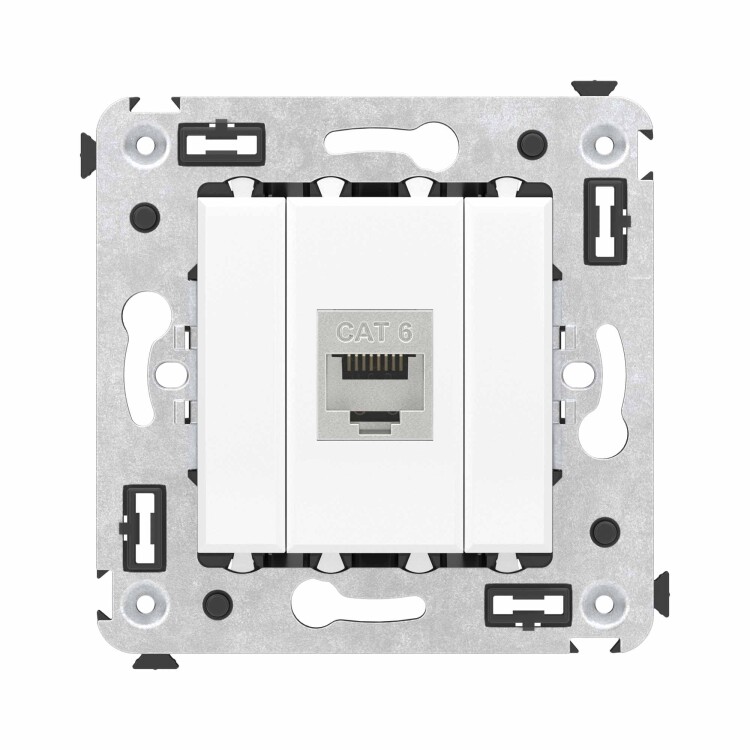 Компью терная розетка экранированная используется для подключения компьютерной техники и соединения с патч-панелью, предназначена для скрытого монтажа в стену, поставляется в комплекте с суппортом. Розетка RJ-45 категории 6 может использоваться для организации сетей с частотой до 250 МГц и передавать данные на большие расстояния. Материал розетки – металл, термопласт. Пластиковые детали изделия выполнены в цвете "Белое облако" – самом универсальном оттенке из цветовой гаммы ЭУИ "Avanti".