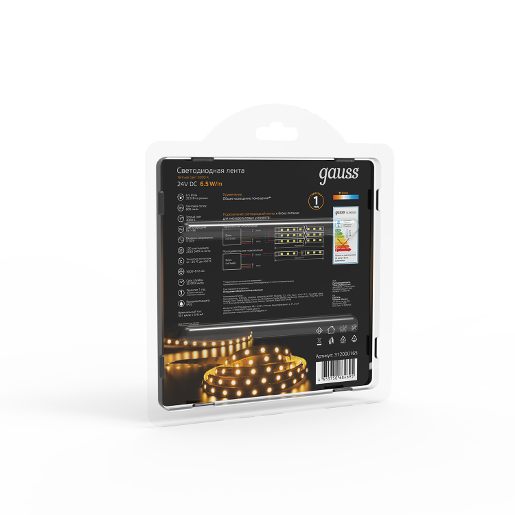 Лента выпускается на гибкой печатной плате, а на обратной стороне используется двусторонний скотч, обеспечивающий надежное крепление ленты. В ассортименте присутствует лента теплого, холодного и RGB свечения со степенью защиты IP20 и IP66. Лента серии Black имеет увеличенный срок служ бы 35000 часов