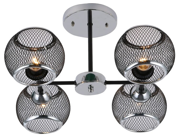 Rivoli Morrigan (арт. 9143-304) - люстра на потолок с 4 металлическими сетчатыми плафонами округлой формы. Такие люстры - популярное решение для современных интерьеров. Плафоны из легкого прочного металла базового черного цвета расположены по кругу, лампочки эффектно направлены в сторону. Люстра в гостиную Morrigan Rivoli отлично распределяет свет в комнате, создает эффектные световые узоры за счет решетчатой структуры плафонов. Шесть источников света - оптимальное решение для люстры в жилую комнату. Рекомендованные лампы для данной люстры в спальню, люстры на кухню - Е27 40 Вт.