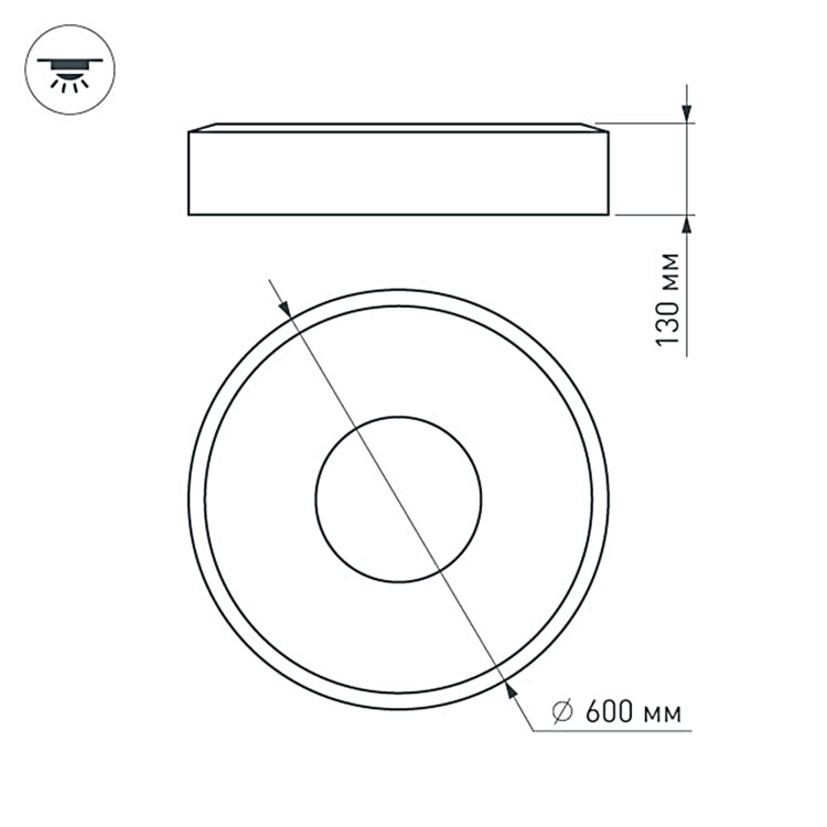 Накладной светильник 42Вт, белый круглый корпус. Цвет ТЕПЛЫЙ БЕЛЫЙ 3000K, св.поток 2400 лм, CRI(Ra)>80, угол 120°. Размер Ф600x130мм. Питание AC220-240V, 42Вт, драйвер встроенный (30-40V, 1050 mA).