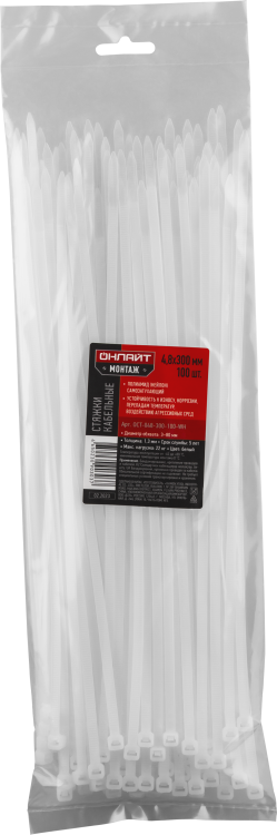 Хомуты ОНЛАЙТ 90 303 OCT-048-300-100-WH (100 шт/упак)(кр.1упак)