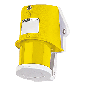 16A, 3п, 4ч, 110B, 50-60Гц. Вилка настенная приборная, угол наклона 15 гр., с защитной крышкой, внешнее или внутреннее крепление, ввод кабеля сверху М20, или через основание 5,3 мм, сечение кабеля 1 - 2,5 кв.мм, винтовое соединение, желтая, IP44.