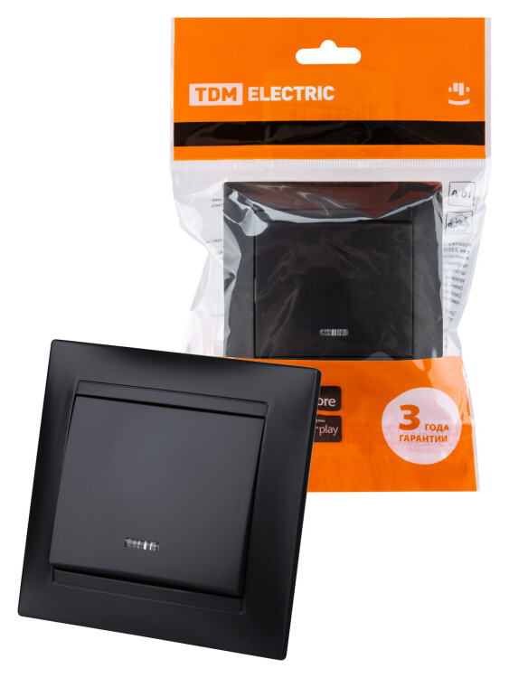 Выключатель 1 кл. с подсветкой 10А графит "Лама" TDM (кр.10шт)
